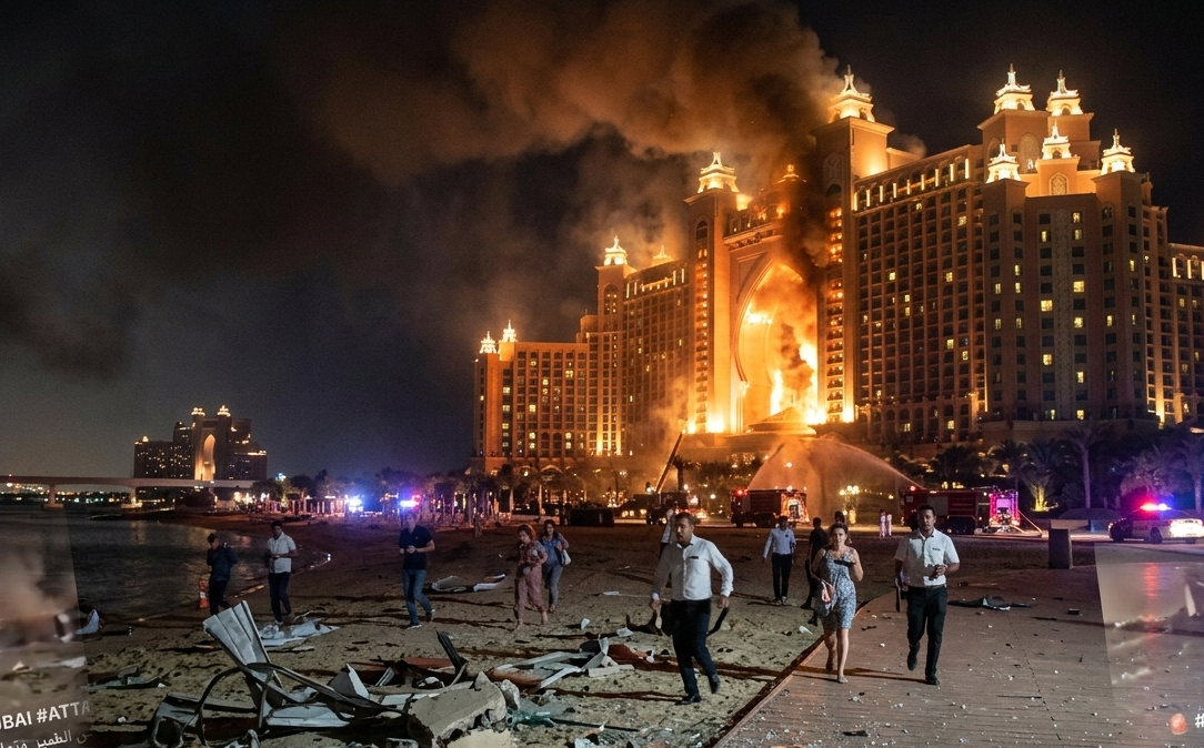 യുഎഇ: ലോകപ്രശസ്തമായ പാം ജുമൈറയിലെ ഫെയർമോണ്ട് ഹോട്ടലിൽ മിസൈൽ പതിച്ച് തീപിടുത്തമുണ്ടായി. ബുർജ് അൽ അറബ്, ദുബായ് അന്താരാഷ്ട്ര വിമാനത്താവളം എന്നിവിടങ്ങളിൽ പ്രതിരോധ സംവിധാനങ്ങൾ തകർത്ത ഡ്രോണുകളുടെ അവശിഷ്ടങ്ങൾ വീണ് നാശനഷ്ടങ്ങൾ റിപ്പോർട്ട് ചെയ്തു. അബുദാബി വിമാനത്താവളത്തിലുണ്ടായ അപകടത്തിൽ ഒരാൾ മരിക്കുകയും ഏഴ് പേർക്ക് പരിക്കേൽക്കുകയും ചെയ്തു.