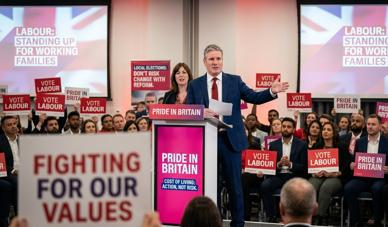 ബ്രിട്ടന്റെ അഭിമാനം ഉയർത്താൻ ലേബർ പാർട്ടി’; പുതിയ മുദ്രാവാക്യവുമായി കെയർ സ്റ്റാമർ. പ്രചാരണത്തിൽ ഇറാൻ യുദ്ധവും പ്രധാന ചർച്ചയാകുന്നു.